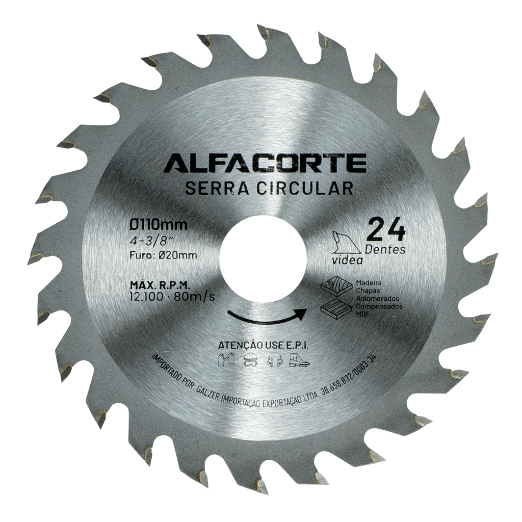 01 – Serra Circular ALFACORTE 110 mm (4-3/8”) 24 dentes – Vídea