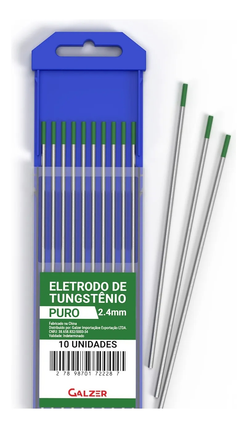 O eletrodo de tungstênio puro 2.4mm é utilizado em processos de soldagem TIG (Tungsten Inert Gas) e é indicado especialmente para a soldagem de alumínio e magnésio, quando utilizado com corrente alternada (AC). Produzido com 99,5% de tungstênio, possui excelente condutividade elétrica e estabilidade de arco, sendo ideal para aplicações que exigem alta pureza e controle térmico.