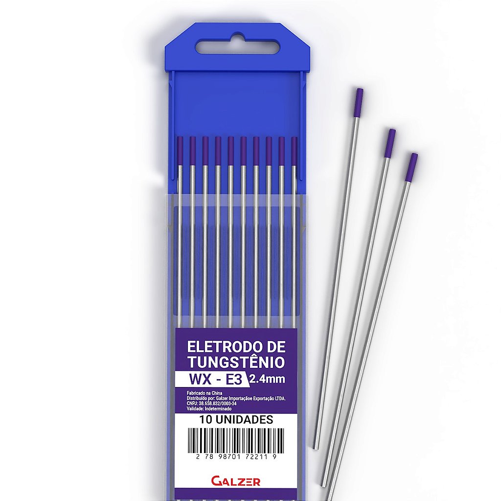 10 - KIT ELETRODO DE TUNGSTÊNIO 2.4MM UNIVERSAL - PONTA LILÁS